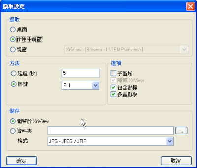 格式:擷取的圖片的存檔格式。
