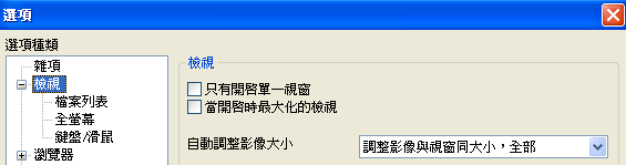 工具 --> 選項 -> 檢視 -> 自動調整影像大小:調整影像與視窗同大小,全部