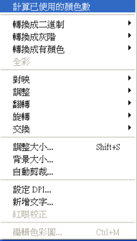 當圖檔進入秀圖視窗後,就可進行影像處理工作,XnView 能做的影像處理工作如下圖: