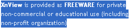 XNView 是一款自由軟體(freeware),可提供非商業用途的私人、教育單位、非營利組織等單位或個人免費使用,目前最新的