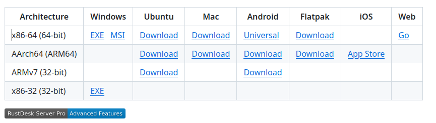 RustDesk 目前支援系統平台有 Android, MS Windows, Linux, MacOS, iOS, Web ,如下圖: