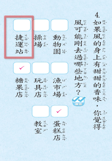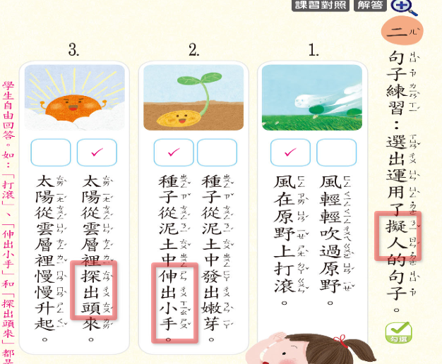 國語習作也有要孩子辨認與勾選的例題,答案也沒有錯,但是,在更進一步思考後,覺得很恐怖。