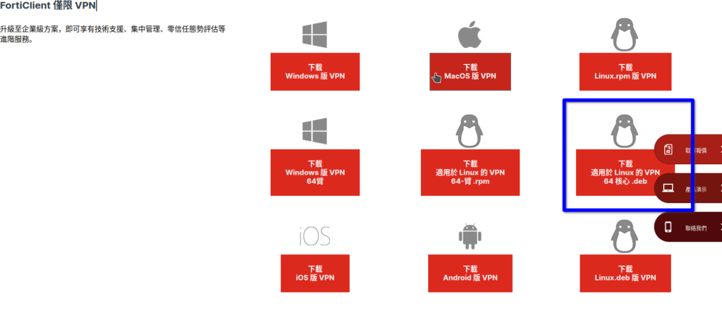 最近幫忙跑個專案,有部主機藏在 Fortinet 架構下,若要連線該主機,要先連上 fortinet 的 VPN Server, 然後才能跳進去該主機。而要連上 fortinet 的 vpn server,則要利用 Fortinet 提供的 VPN 連線軟體,才能連得進去。
