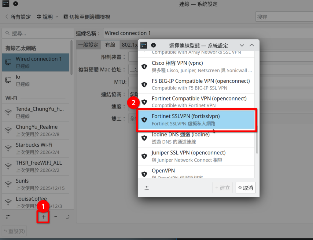 network-manager-fortisslvpn \ ## 我使用 KDE 環境,所以必裝